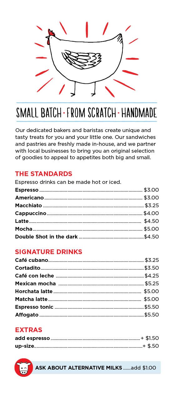 Our dedicated bakers and baristas create unique and tasty treats for you and your little one. Our sandwiches and pastries are freshly made in-house, and we partner with local businesses to bring you an original selection of goodies to appeal to appetites both big and small. We've got vegan donuts and a slew of other delectables. See you soon!